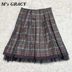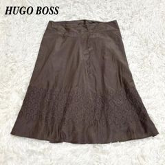 【美品】HUGO BOSS 刺繍フレアスカート 膝丈 US8 L ブラウン