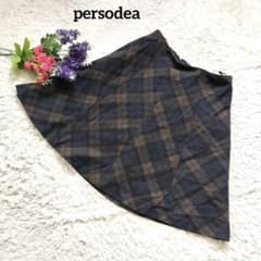 AQUA FLORAL ブラウン ウール混紡 フレアスカート ひざ丈 Aライン