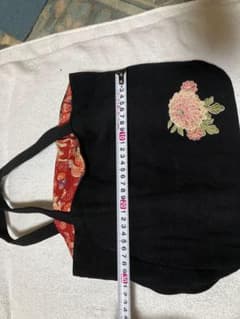 和柄 トートバッグ ブラック レッド ポーチ付 レディース 和風 ノーブランド