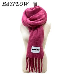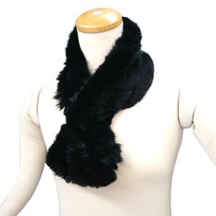レディース ファー ロングマフラー ブラウン ポンポン付き