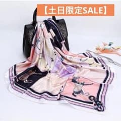 シルクスカーフ 大判 黒 白 花柄 リボン バッグ ヘアアレンジ