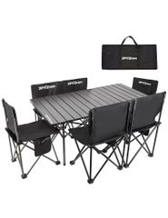 【数量限定】(7 キャンプ用品 屋外 ガーデン テント お釣り BBQ 収納バッグ付き 組立簡単 ブラック) 折り畳み 超軽量 ピクニックテーブル ベンチセット ピクニック アルミテーブル椅子 7点セット チェア テーブル アウトドア