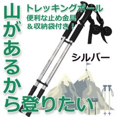 トレッキングポール 軽量アルミ製 三段式伸縮シャフト シルバー