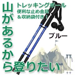 トレッキングポール 軽量アルミ製 三段式伸縮シャフト ブルー