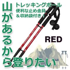 トレッキングポール 軽量アルミ製 三段式伸縮シャフト レッド