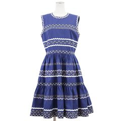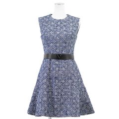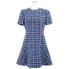 【極美品】LOUIS VUITTON ルイ・ヴィトン ワンピース ツイード 2022AW LV ロゴ フレアシルエット ラウンドネック ショートスリーブ 半袖 シルクブレンド スケータードレス レディース サイズ 38 ブルー マルチカラー 青 イタリア製