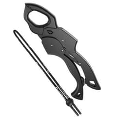 フィッシュグリップ 魚つかみ器 釣り用 軽量 ブラック 落下防止コード付き