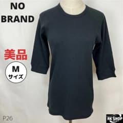 美品 ノーブランド トップス ワッフルカットソー 七分袖 無地 シンプル 黒