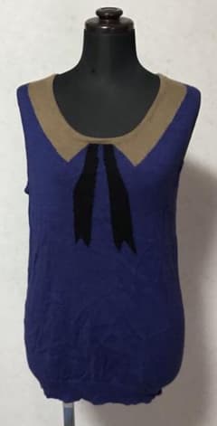 美品 ミッシュマッシュ ノースリーブニット装飾プルオーバー M 水色 花柄刺繍