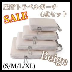 圧縮トラベルポーチ 4点セット ベージュ 圧縮 丸洗い可能 旅行グッズ