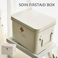 ソワン・ファーストエイドボックス 救急箱 救急バッグ 薬箱 けが 応急手当 大容量 裁縫箱 ソーイングボックス オシャレ 救急用品 救急鞄 小物入れ おしゃれ ホワイト ベージュ