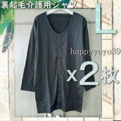 2枚組 激安新品 L 介護用シャツ 裏起毛メンズ前開き 男性 長袖 介護用 肌着