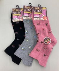 ゴム無し ソックス 2足 介護 口ゴム 黒 グレー系 すべり止め 花柄 フラワー
