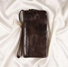 長財布 本革 ラウンドファスナー&二つ折り 大容量 ストラップ ブラウン 大人気
