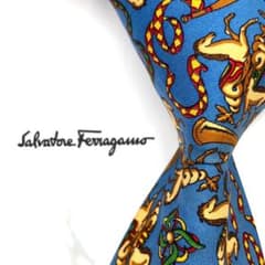 美品 Salvatore Ferragamo馬と太陽柄 ネイビー ネクタイ