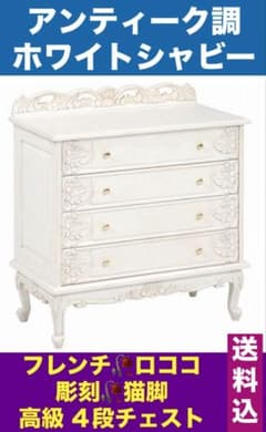 ホワイト チェスト♦️ピンクシルバー ロココ装飾♦️しっかりとした 隙間収納♦️送料込