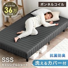 【リニューアル】脚付きマットレス セミシングルショート《頑丈構造 天然木×スチール》洗えるカバー付き 高反発 抗菌 防臭 ニット生地 ベッド ボンネルコイル ブラック