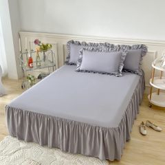 【在庫処分】スカート丈40cm ダークグレー ベッドカバー エレガント 高質感 シンプル レトロ 北欧 100*190cm 洋式 無地 ポリエステル ベッドスカート PiccoCasa