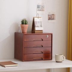【新品?未使用】 ファイルキャビネット 木製 デスク収納 レターケース 収納ボックス 卓上収納 引き出し付き 鍵付き 大容量 A4トレー 組立不