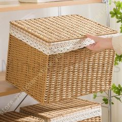 籐かごバスケット 収納ふた付きカゴ 収納ボックス 棚クローゼット かご かご 収納ボックス フタ付き 収納バスケット 収納カゴ 籠 ふた付き