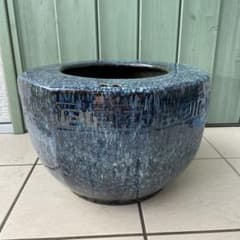 メダカ鉢 ブルー 昭和レトロ 備前焼 海鼠 大型 火鉢 睡蓮鉢 金魚鉢 メダカ鉢
