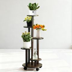 新品 ディスクフラワースタンド 室内 キャスター付き、高低竹フラワースタンド、 フラワースタンド 室内 木製 ガーデンラック フラワースタンド 室内 プランタースタンド 観葉植物 ラック 観葉植物 スタンドリビングルームバルコニーグリーンディルフラワーポットス