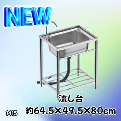 #1415 ステンレス製 厚みプラス 流し台 サイズ幅64.5×奥行き49.5×高さ80cm 深型シンク 蛇口付き 丈夫で長持ち 豊富な付属品 便利なタオル掛け S61 ※一部地域離島別途配送料有