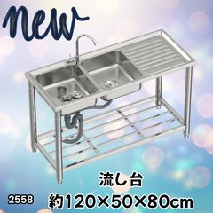 #2558 ステンレス製 流し台 作業台付き ダブル シンク 蛇口付き 付属品セット サイズ 約120×50×80cm RC-CW1200 ※北海道、沖縄本島、沖縄の離島、その他離島へは別途配送料有り