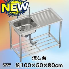 #2557 ステンレス製 流し台 作業台付き シンク 蛇口付き 付属品セット サイズ 約100×50×80cm RC-C1000 ※北海道、沖縄本島、沖縄の離島、その他離島へは別途配送料有り