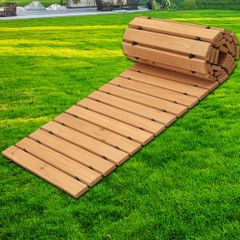 木製ガーデンパス 直線デザイン ロールアウト式 耐候性 天然杉材 庭園/ビーチ/アウトドア/雪道対策 (幅43cm×長さ3.6M直線, ナチュラル)★m