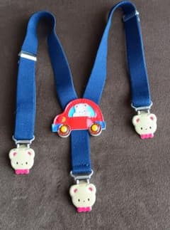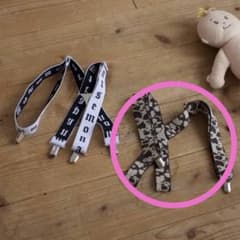ネイビー サスペンダー クマのレザーパッチ付き 子ども用