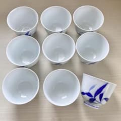深川製磁 白 青 植物柄 湯呑み 9客