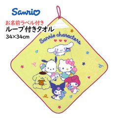 タオルハンカチ ループ付きタオル 綿100% 34×34cm サンリオ 手洗い お手拭き 入学準備 入園 給食 小学校 幼稚園 保育園 かわいい wp4493
