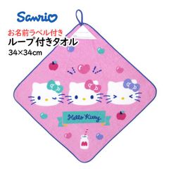 タオルハンカチ ループ付きタオル 綿100% 34×34cm ハローキティ 手洗い お手拭き 入学準備 入園 給食 小学校 幼稚園 保育園 かわいい wp4494
