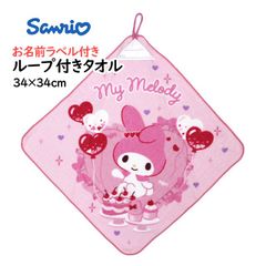 タオルハンカチ ループ付きタオル 綿100% 34×34cm マイメロディ 手洗い お手拭き 入学準備 入園 給食 小学校 幼稚園 保育園 かわいい wp4495