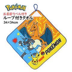 タオルハンカチ ループ付きタオル 綿100% 34×34cm ポケットモンスター 手洗い お手拭き 入学準備 入園 給食 小学校 幼稚園 保育園 wp4498