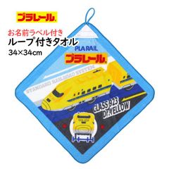 タオルハンカチ ループ付きタオル 綿100% 34×34cm プラレール 手洗い お手拭き 入学準備 入園 給食 小学校 幼稚園 wp4502