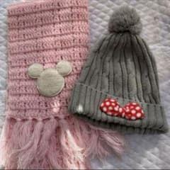 ディズニー マフラー ニット帽 ミニー ピンク グレー リボン キッズ