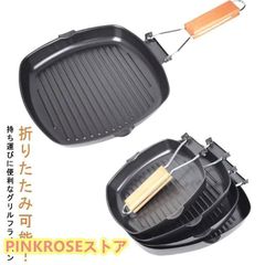 【新品?未使用】 グリル フライパン 折り畳み式ハンドル IH対応 ガス火OK 直火対応 底面波状 フライパン 焼き肉 ステーキ 魚焼き 20×20cm