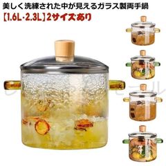 【新品?未使用】 ガラス鍋 両手鍋 深型 1.6L 2.3L ガラス蓋付き 卓上鍋 ガラス調理鍋 スープ鍋 煮込み鍋 耐熱ガラス 直火 ガス火 電子レン