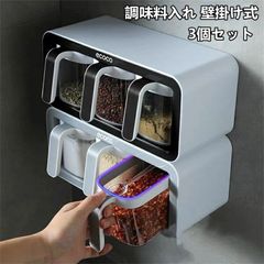 【2個セット】調味料ポット 調味料入れ スプーン付き 3個セット 壁掛け式 調味料ケース 密閉容器 保存容器 防水防湿気 キッチン 調理用具 穴あけ不要 取り付け簡単