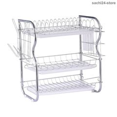 【新品?未使用】 3層食器排水ラック 水切りラック キッチン食器 収納ラック 3段 水切りかご スライド式 箸立て コップかけ 台所用品ホルダ