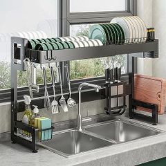 水切りラック ホワイト 取り外し可能な排水トレイ付き