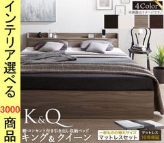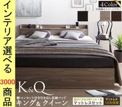 ベッド ミディアムベッド+マットレス 160×211×73cm 棚・コンセント・引き出し付き ゾーンコイル 匠モデル インドネシア製 クイーン 4色展開 YC8500050447