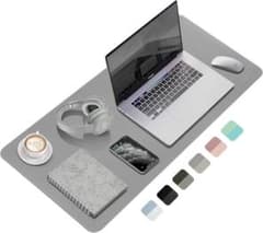 フェイクレザー デスクマット グレー 90 × 43 cm ベルト付き 未使用