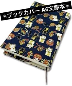 ブックカバー 本カバー サイズ調整可能 しおり付 大福猫 ネイビー A6 文庫本