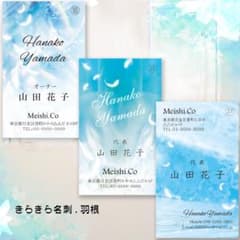 名刺作成 50枚 きらきら名刺18.25.27 羽根の舞うブルーのきらきら名刺