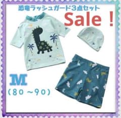 新品】キュートな恐竜柄☆ 恐竜ラッシュガード3点セット M (80〜90) a