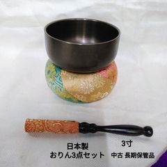 【在庫セール】仏壇 仏教 法要 仏具 鐘 輪 金色 鈴 真鍮製 美しい音色 3寸 直径9cm 持ちやすい おりん3点セット(おりん、りん棒、座布団) Hiro