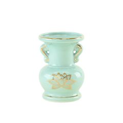 【ラスト1点】【お仏壇のはせがわ】 仏具 花立て 仏具 仏壇 花瓶 陶器 花立 青地 金蓮 3.5
